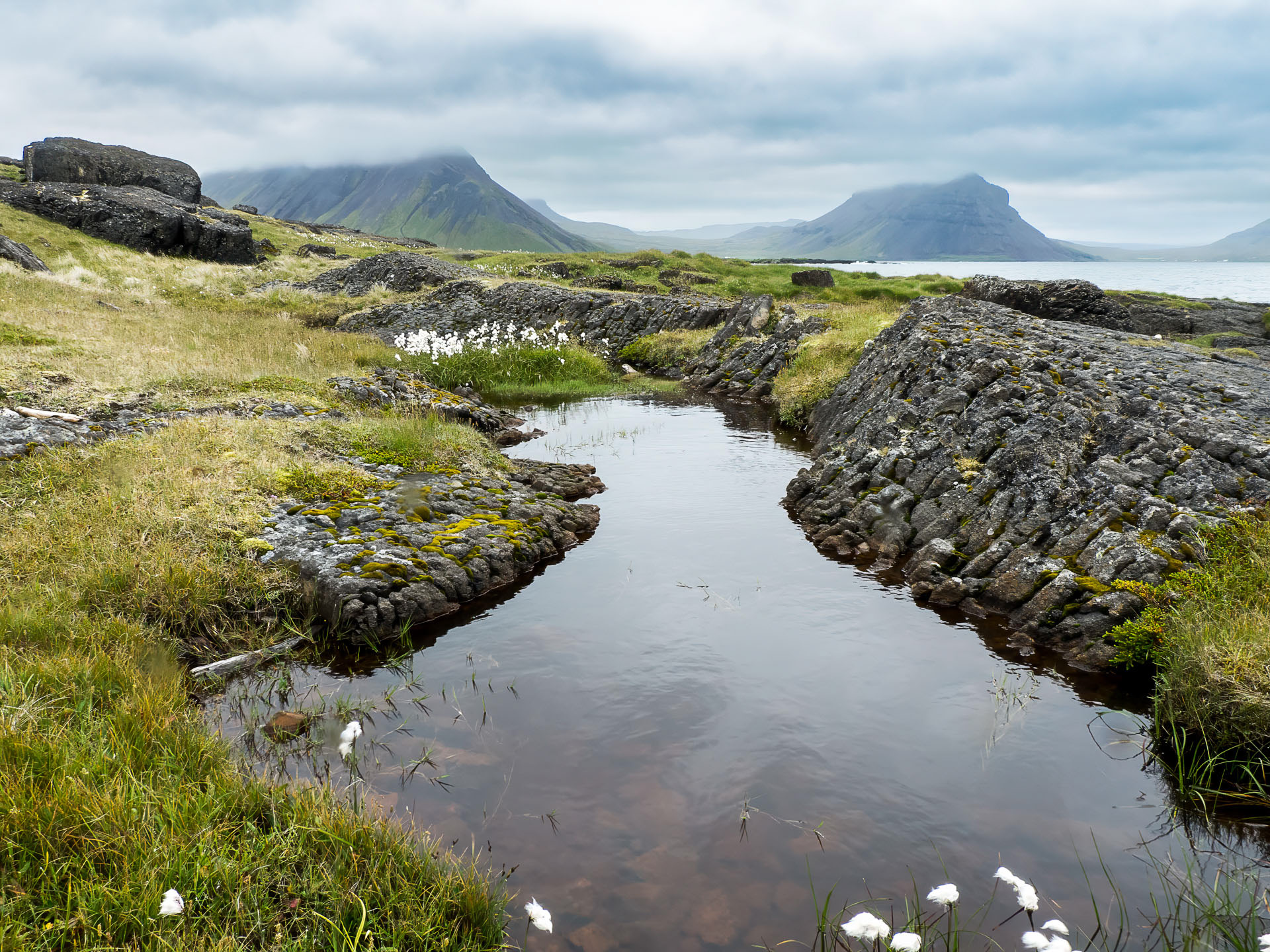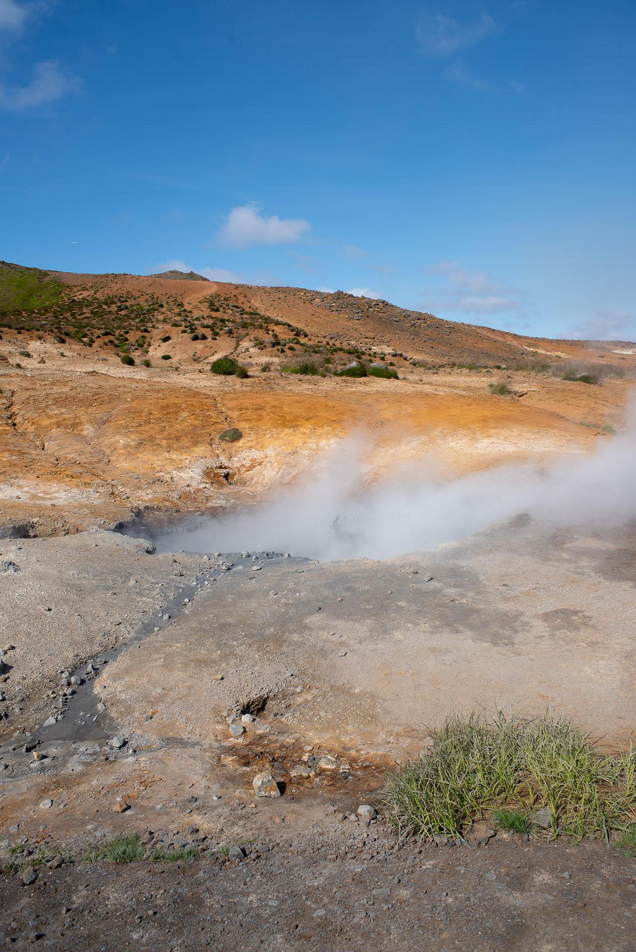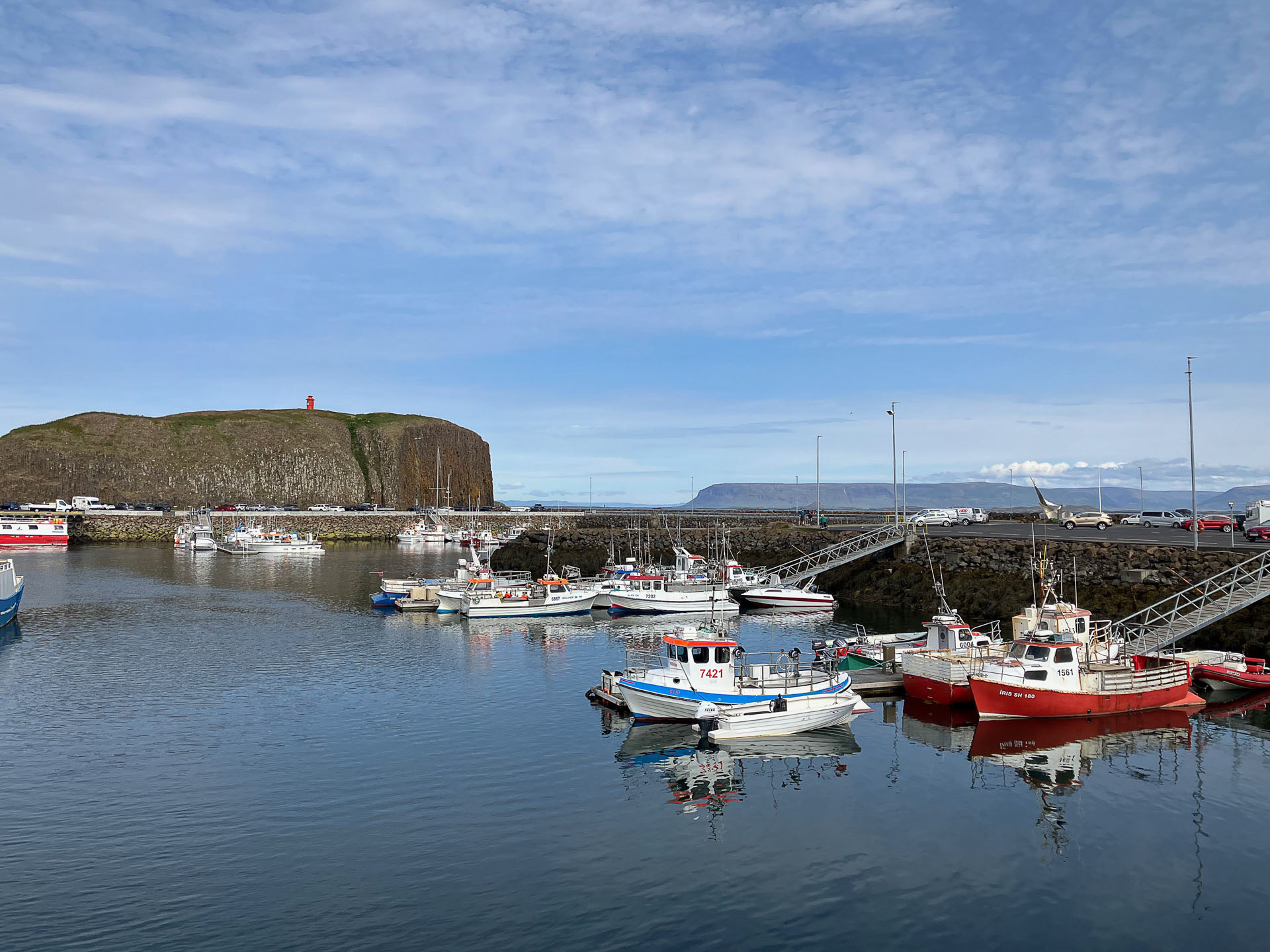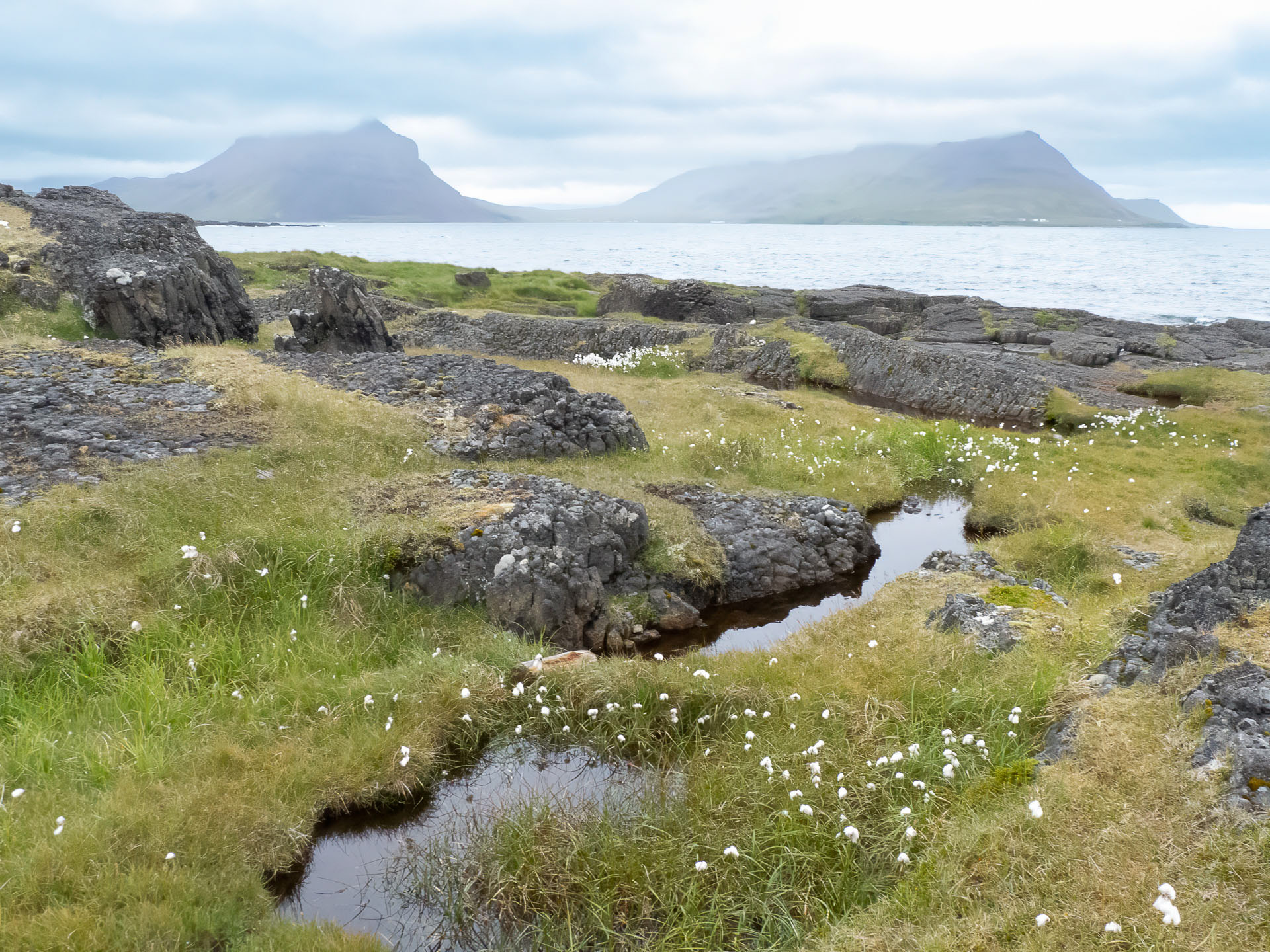 We flew into Keflavik on 18 July and picked up our hire car, then drove the short distance to the Lighthouse Inn, Garður. With its two lighthouses Garður was a good base from which to explore the Reykjanes Peninsula before we set out for Flatey and the Westfjords. Sights included the Hvalsneskirkja, Hafnaberg Cliffs with plentiful birdlife and Gunnuhver and Krýsuvík geothermal areas. We also saw Kálfatjarnarkirkja and Reykjanes Lighthouse (not pictured below). We had lunch in Grindavík, the town that has since had to be evacuated because of seismic activity.