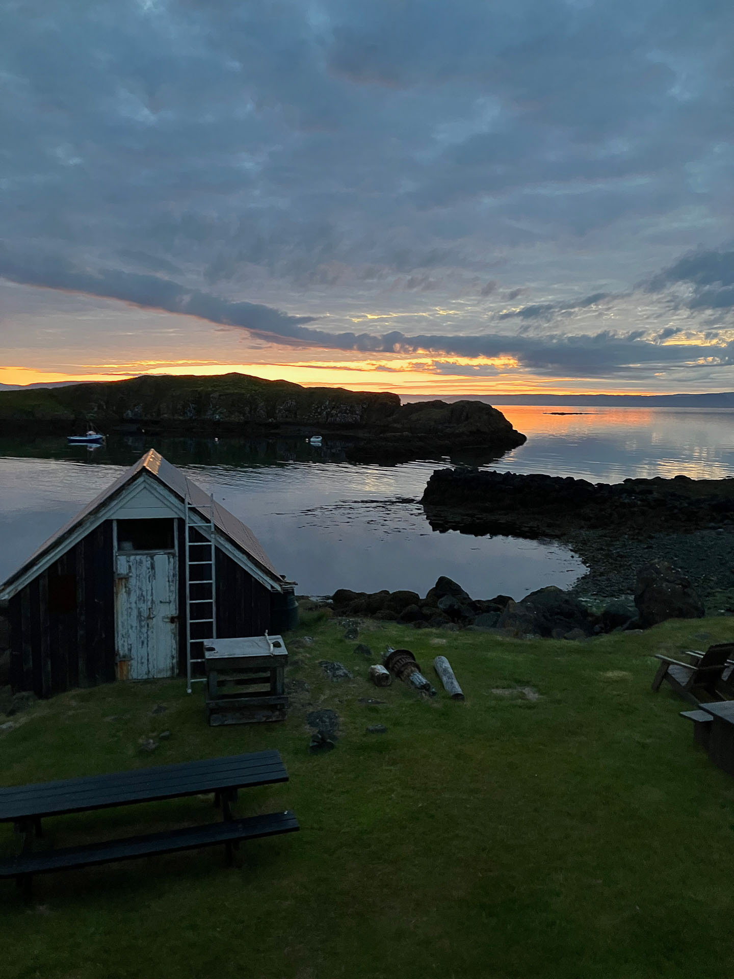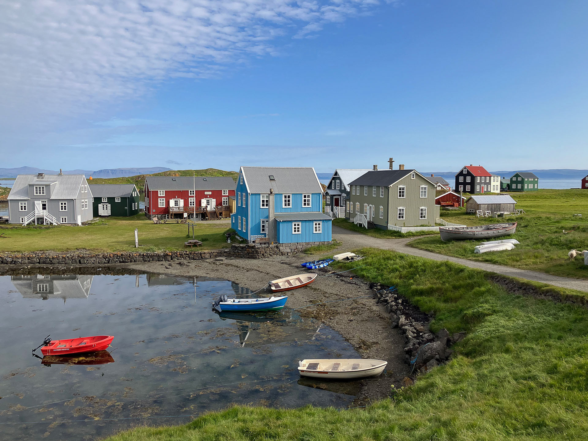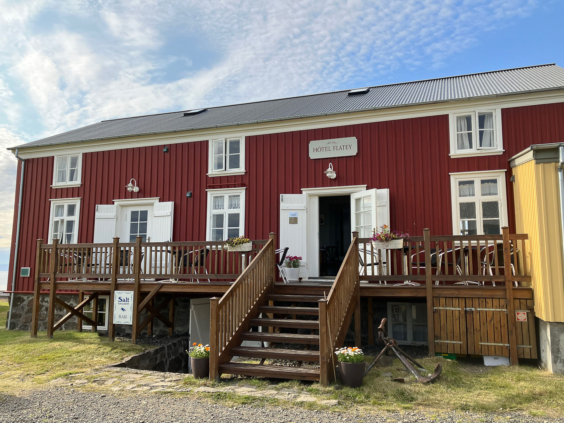 20th July: we drove to Stykkishólmur, had lunch, and boarded the ferry for the island of Flatey. The car stayed on the ferry to the Westfjords; we got off and walked to the Hotel Flatey and then explored the small island. There are some very good birdwatching spots, and we had an excellent dinner of scallops in the hotel.