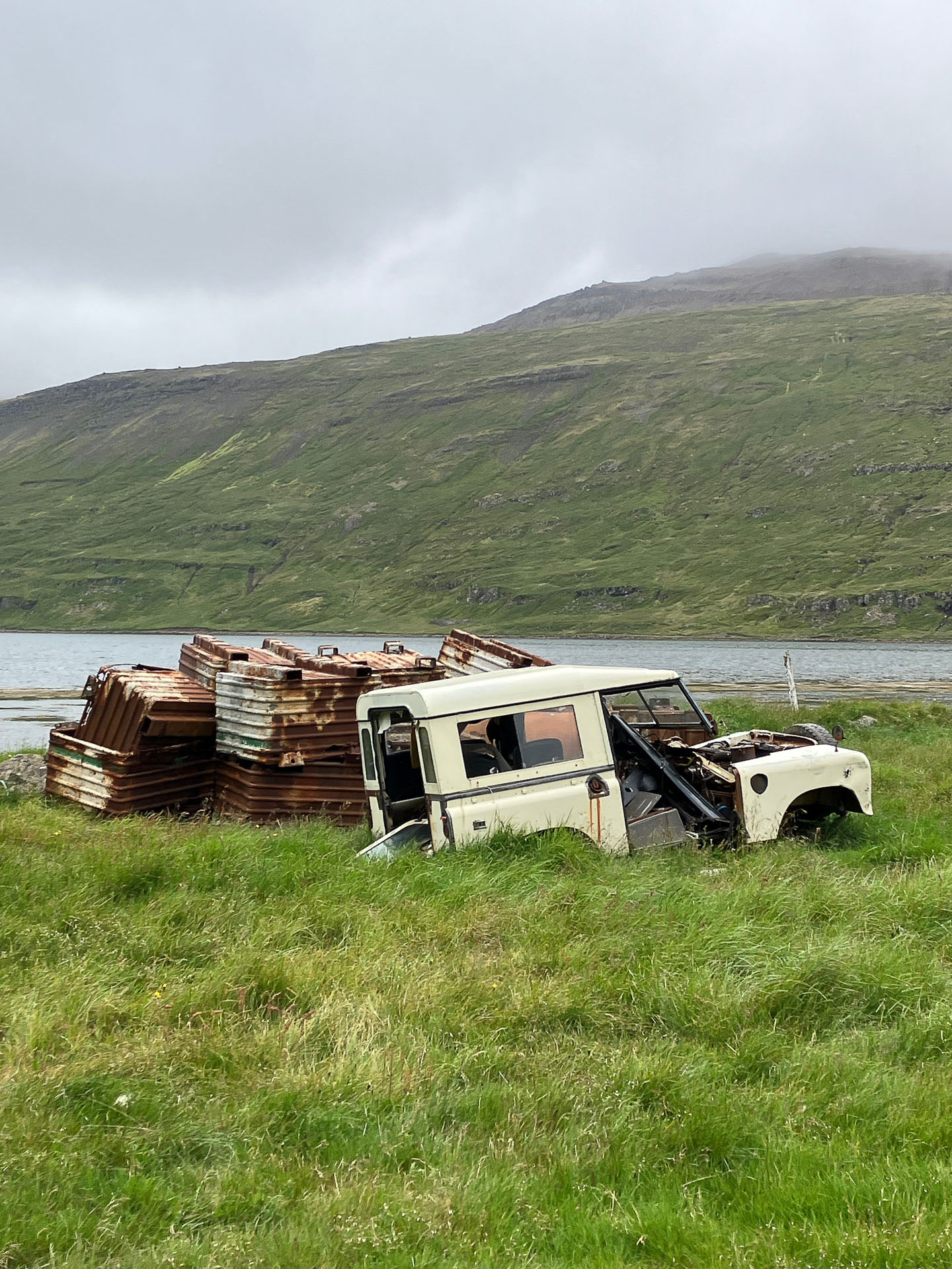 25 July: Exploring Ingólfsfjörður. We had a morning walk along east side of Ingólfsfjörður; we saw a whale in the distance, but it was too far away to get a photograph. Then an afternoon drive along the west side, including an abandoned herring pickling plant.