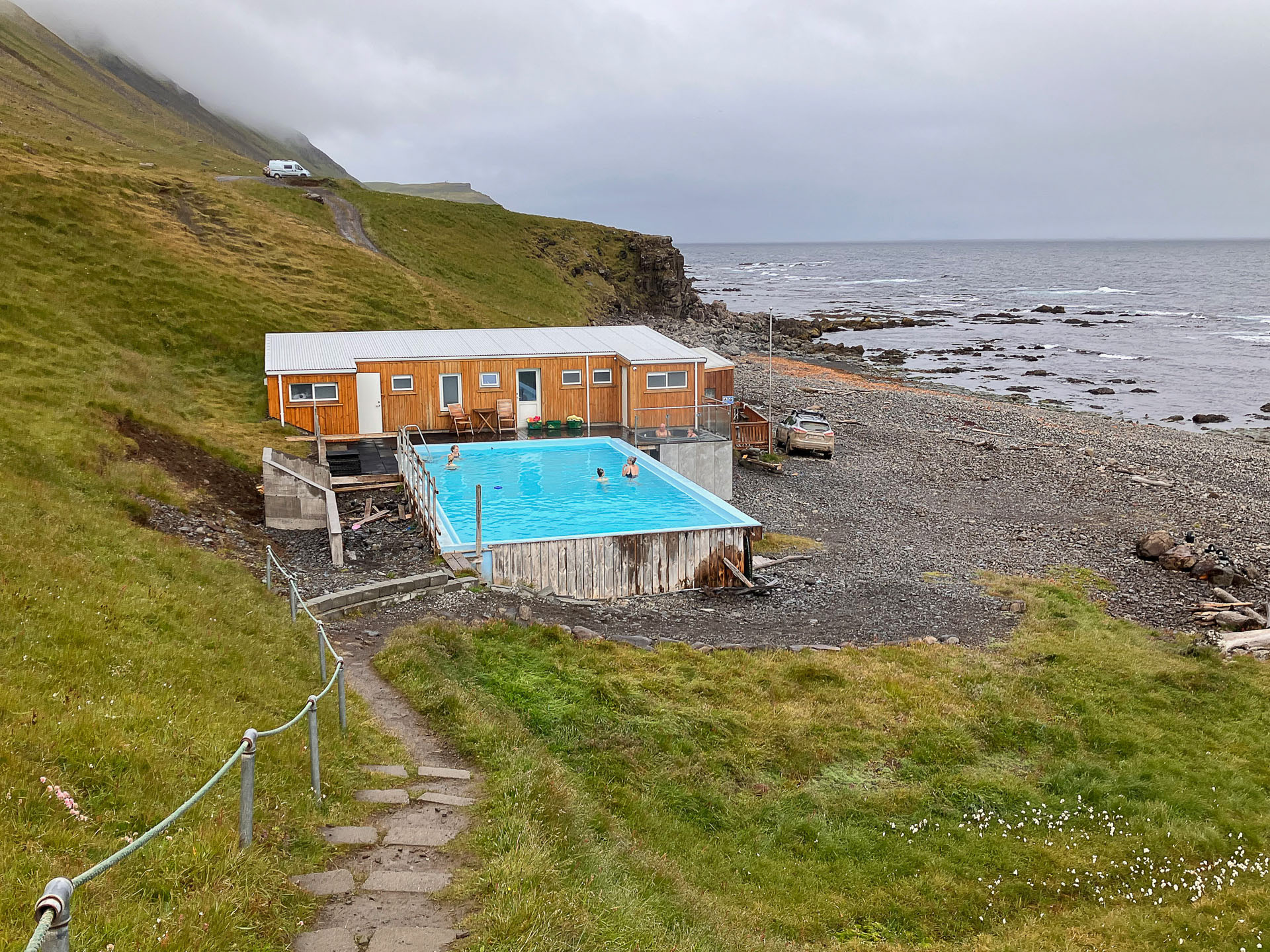 26 July: A morning swim in Norðurfjörður pool. In the afternoon we visited Memorial Museum Kört and explored the witch burning site at Trékyllisvík: a trail marked with wood carvings.
