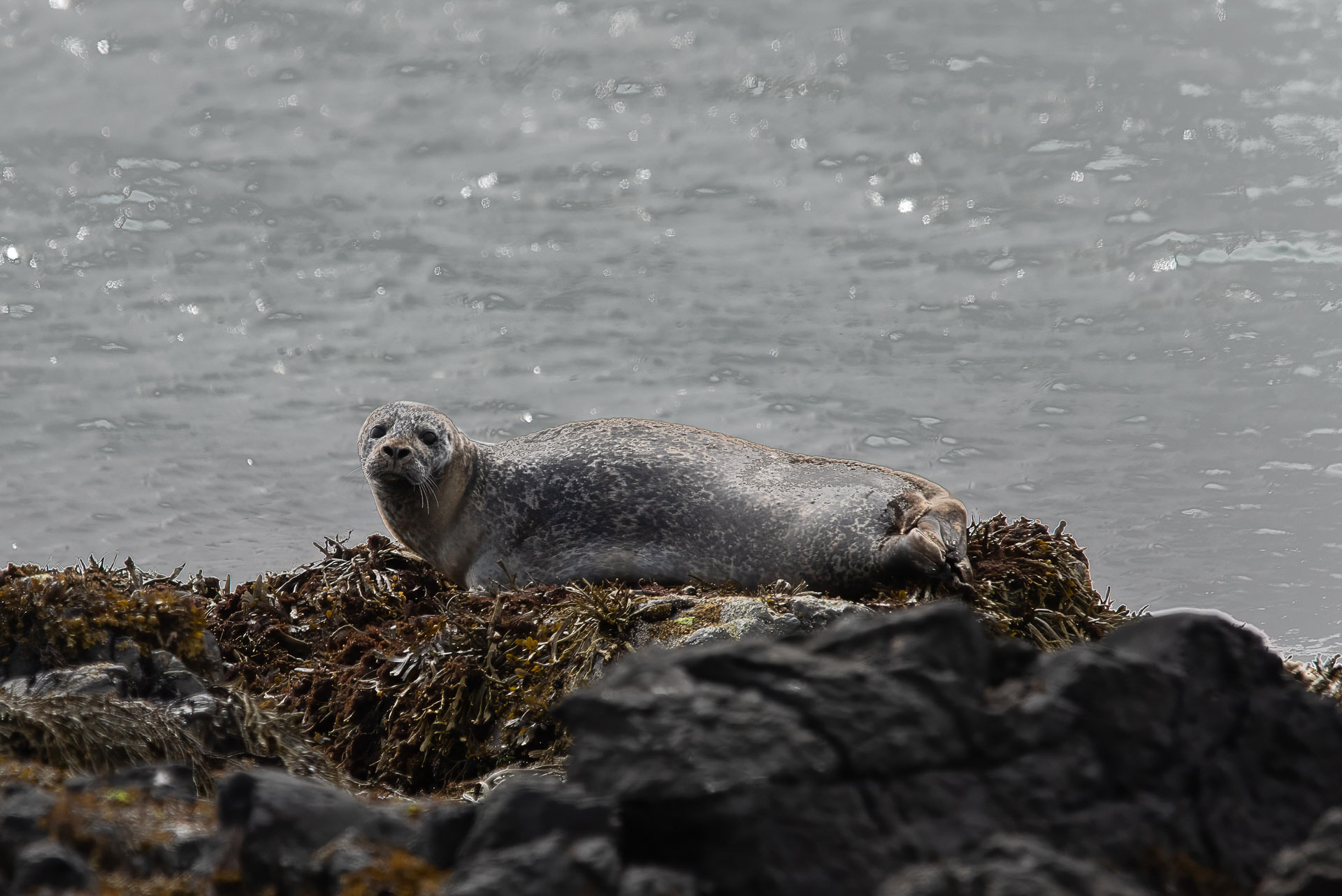 21 July: We boarded the ferry again and are reunited with the car in Brjánslækur. On the way to the Hotel Breiðavík we’re surprised by the sight of the remains of an old ‘plane at The Museum of Egill Ólafsson at Hnjótur. It turns out to be a fascinating museum detailing the history of fishing, farming, and everyday life in the area. Our room at the hotel seems to have been inspired by a shipping container, but is very comfortable and the food at the hotel is excellent. It’s also a short walk to the beach, where we have an excellent seal sighting. It’s a short drive to Látrabjarg cliffs, where we see lots of puffins and seals.