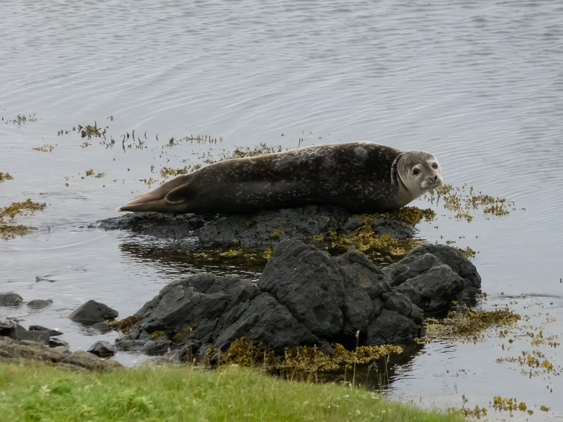 28 July: Drive to Hvammstangi and round Vatnses Peninsula. Many seals. Saw waterfall at Kolugljúfur.