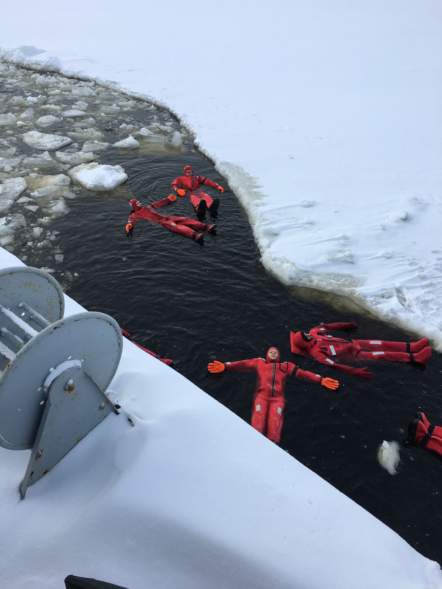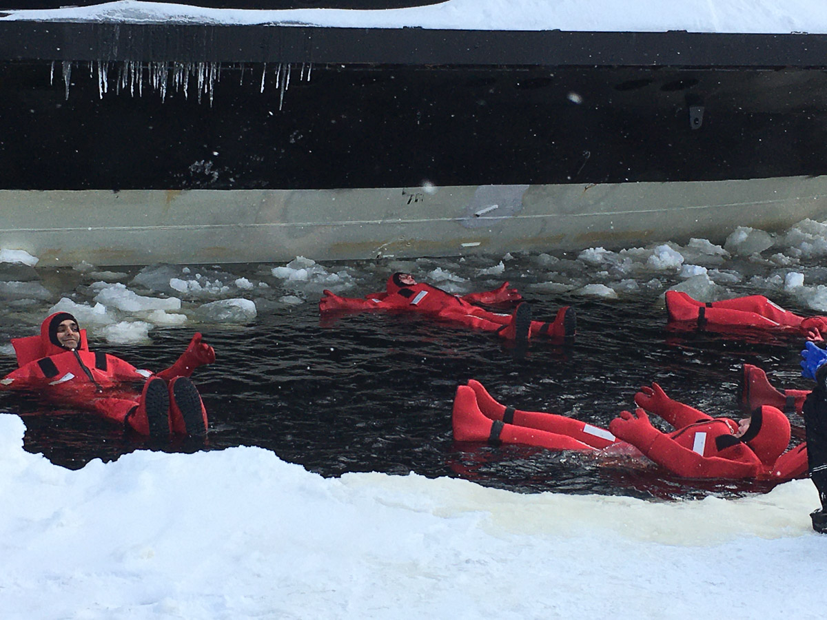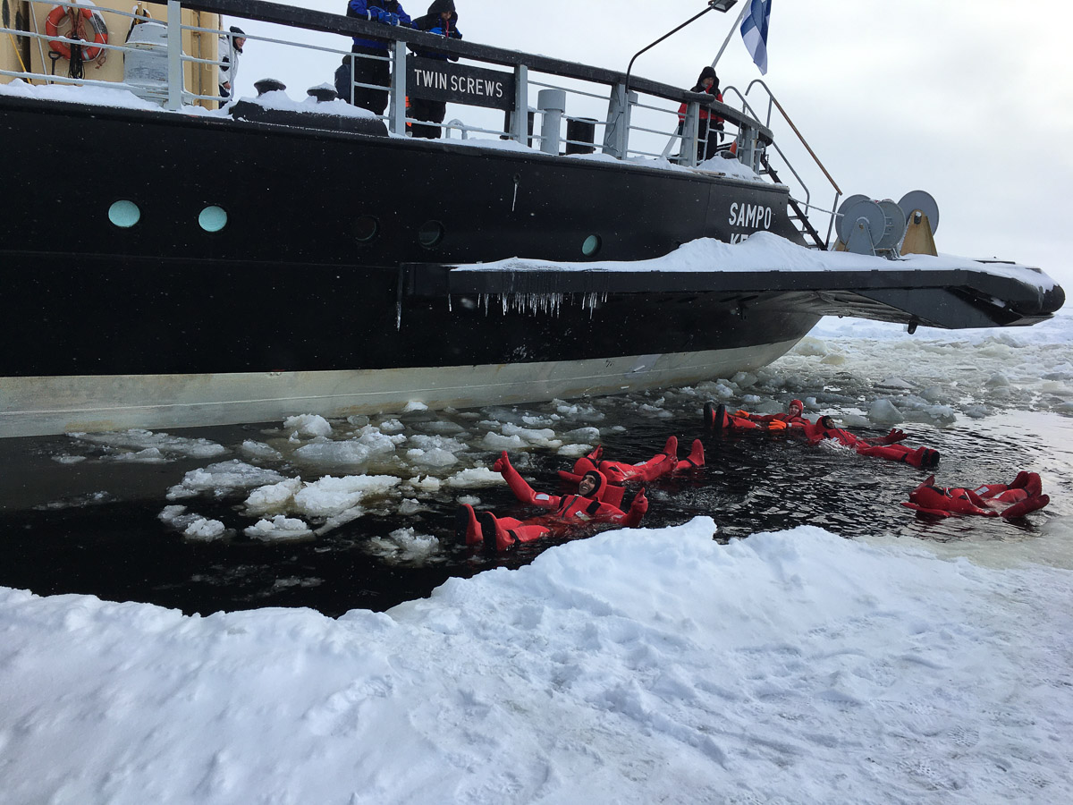 In the Sea. We were kitted out with teletubby suits and encouraged to float in the freezing water. The whole experience was well worth the trip from Helsinki. In any case, Kemi is a very pleasant town with historic buildings and a somewhat remote feel to it.